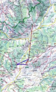 Nelle fotografie il Santuario della Madonna d’Erbia. Sulla cima del prato, segnato da un puntino rosso, il punto dal quale si vede Parre (fotografia a destra) e volgendo la vista all’indietro, la Trinità, come è indicato nella cartina sottostante.