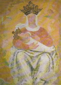 Il dipinto quattrocentesco dedicato alla Madonna cristiana, distrutto e ridipinto, mostra Maria che allatta il divino bimbo e i colori dei suoi vestiti sono il bianco, il rosso e il verde/blu.