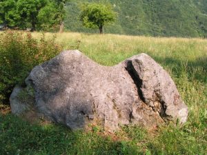 “Le pietre della Madre Terra – scrive Gimbutas – dotate del potere di concedere la fertilità alle donne sterili hanno una superficie levigata. In Germania e nei paesi scandinavi una pietra piatta con le superfici levigate è chiamata Brautstain, o pietra della sposa. Le giovani spose vi si sedevano sopra o vi si strusciavano per avere fertilità. La glissade, “scivolata” in francese, praticata segretamente in Francia nel XVIII e XIX secolo, richiedeva il contatto delle parti posteriori con la pietra. Le pietre inclinate si prestano meglio a questo scopo. La continua ripetizione della cerimonia da parte di numerose generazioni ne ha levigato le superfici”. [21]