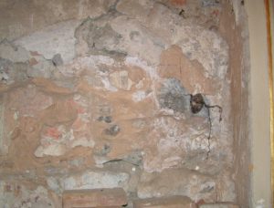 Lacerti del primo affresco andato distrutto.