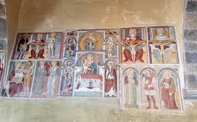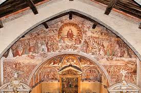 L’edificio, risalente al 1.100 è sorto su un precedente luogo sacro e ospita uno dei più famosi dipinti del Baschenis: un Giudizio universale di rara bellezza.